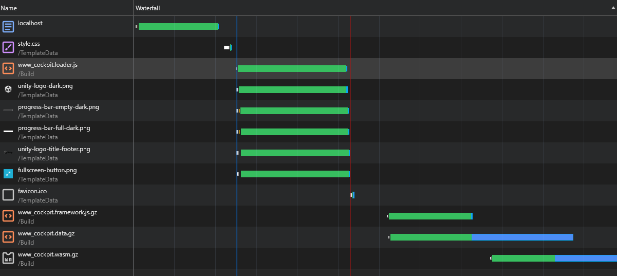 • www_cockpit.loader.js is the first JavaScript file that is loaded. This is a small piece of code that loads the main parts of the Unity game.