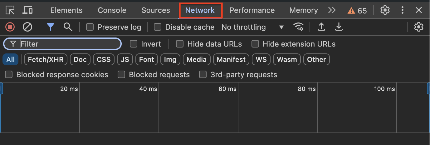 Note: You might need to refresh your browser’s dev tools (Windows: F5, macOS: Cmd+R) to populate the Network tab with this information.