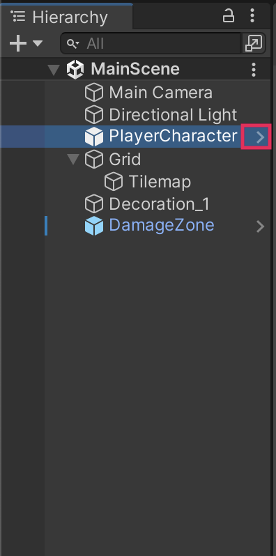 1. In the Hierarchy window, select the PlayerCharacter GameObject.