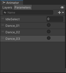 - Create three new trigger parameters: Dance_04, Dance_05, and Dance_06. These parameters correspond to the R, T, and Y keys.