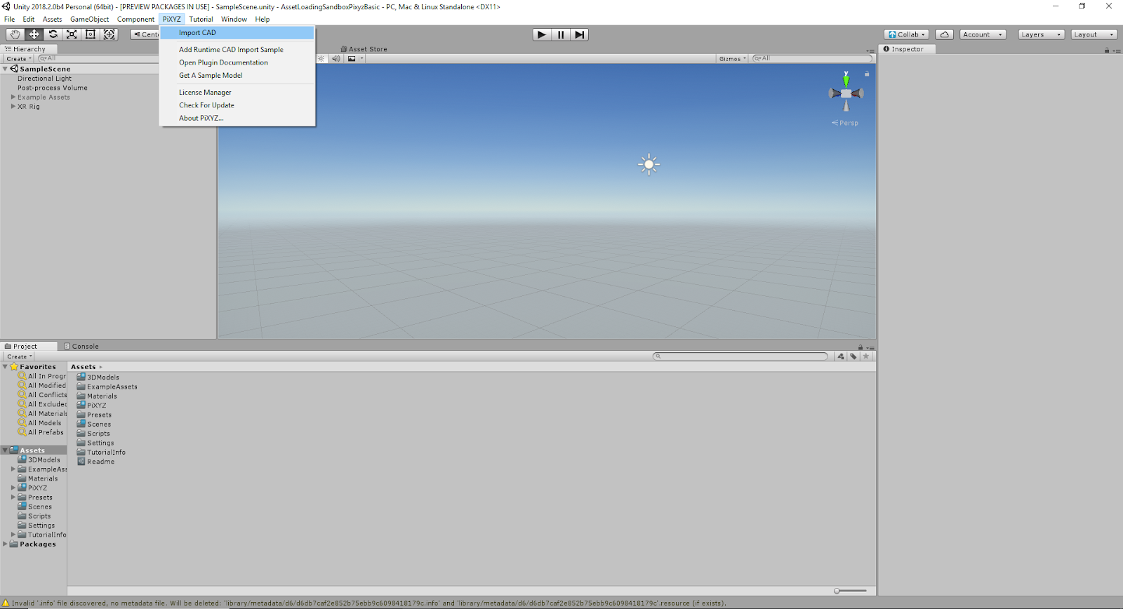 Import PiXYZ plugin for Unity into your Unity Project