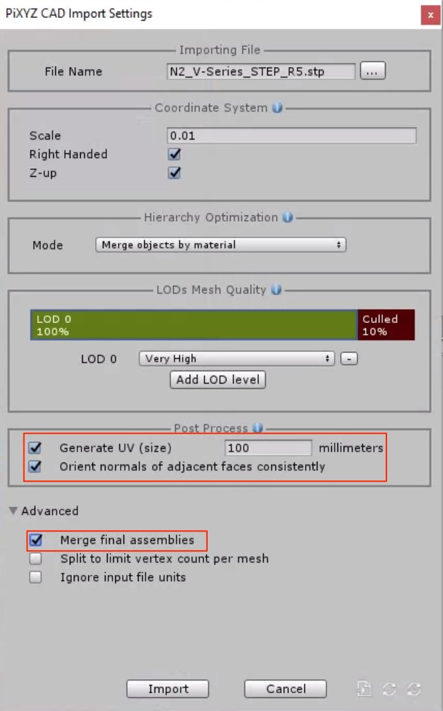 • PiXYZ Plugin Import Dialog