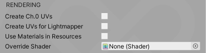 If an Override Shader is specified, PiXYZ uses that in the Materials for the imported model. Otherwise, the standard Shader for the chosen Render Pipeline is used.