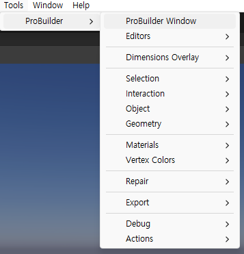 To work with ProBuilder, you need to open the ProBuilder window first. To open the ProBuilder window, navigate to Tools > ProBuilder > ProBuilder Window.