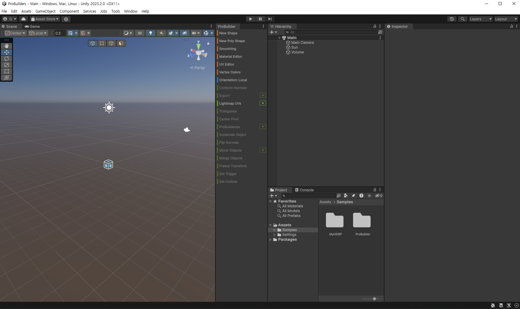 This content is based on the 2023.2a HDRP environment. The ProBuilder package is not greatly impacted by the editor version, so select whichever version you prefer.