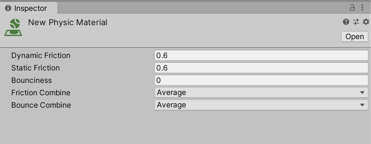 Controls how the frictions of surfaces interact with other surfaces. Custom Materials can be applied to Physics Colliders. You can specify the values for: Dynamic Friction, Static Friction, and Bounciness, as well as customize the parameters for: Friction Combine, and Bounce Combine. To create a custom Physics Material, select from the top menu drop-down: Assets > Create > Physic Material (Figure 06), and add it to your GameObject by selecting the newly created Physic Material in the Project window, and dragging it to the GameObject’s Material property in the Inspector.