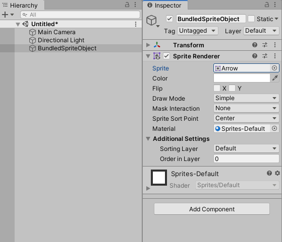 2. In a new Scene, create a GameObject called “BundledSpriteObject”.