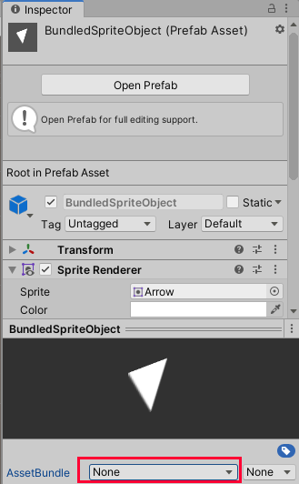9. Select None next to AssetBundle to assign BundledSpriteObject to an AssetBundle (Figure 03).