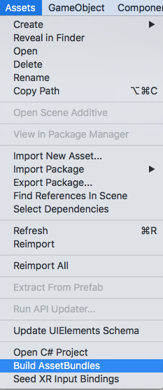 An important note about Unity AssetBundles: The AssetBundle Manager is deprecated for Unity versions 2018.2 and higher.