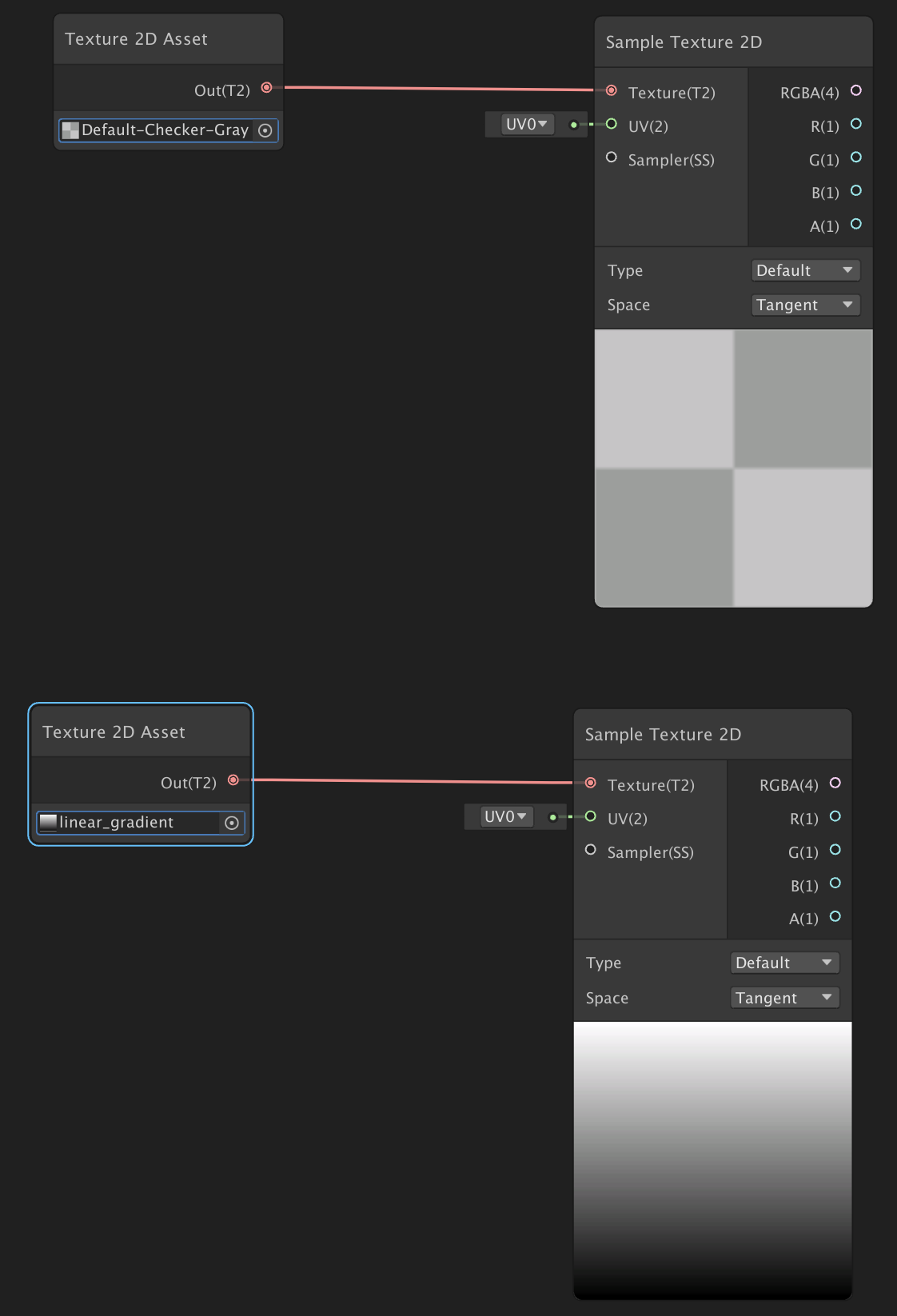3. In the second Texture2D Asset Node, search for and apply a secondary texture to blend with, like a Gradient texture (Figure 06).