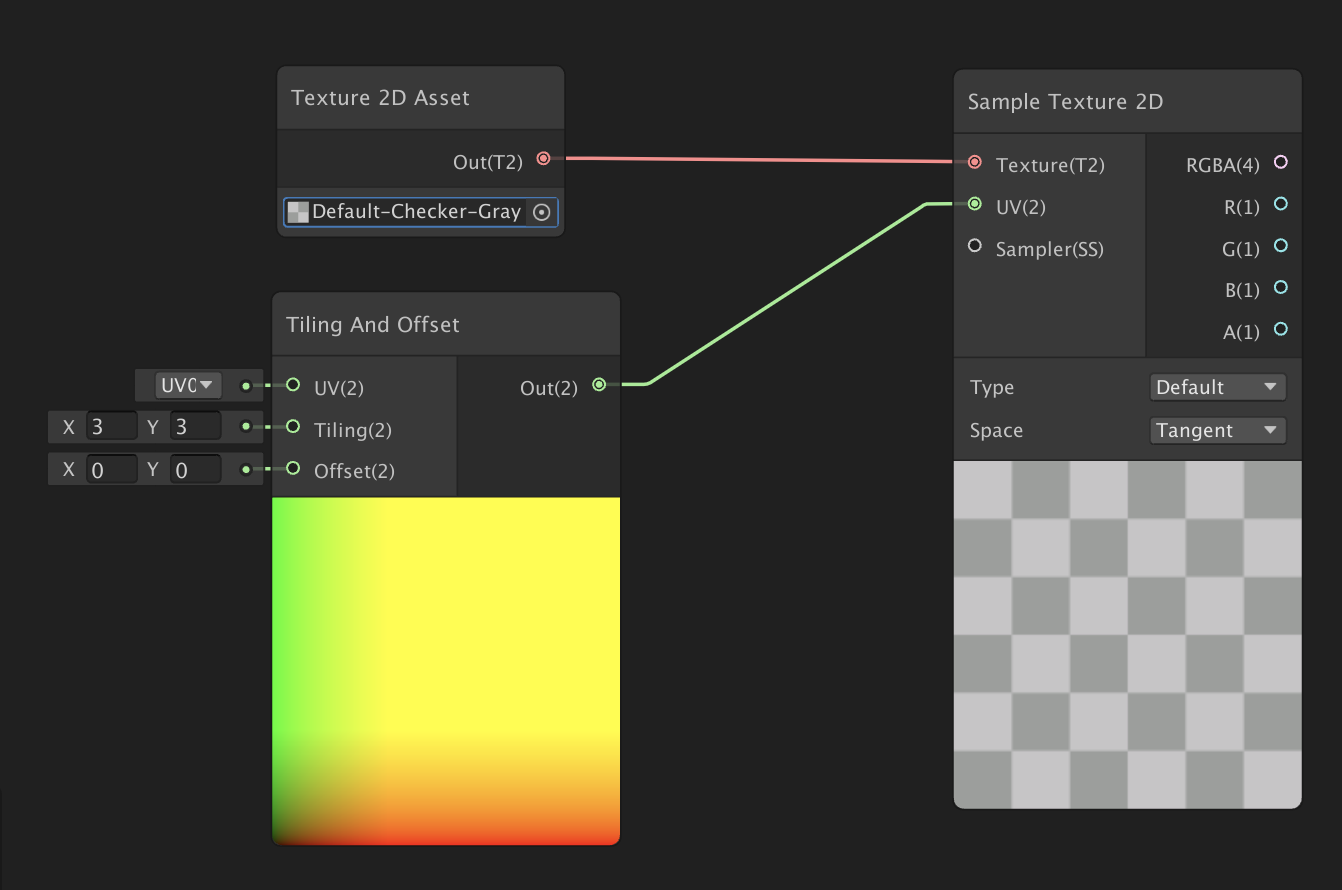 6. Drag the Tiling and Offset Out(2) node to the Checker Sample 2D node.