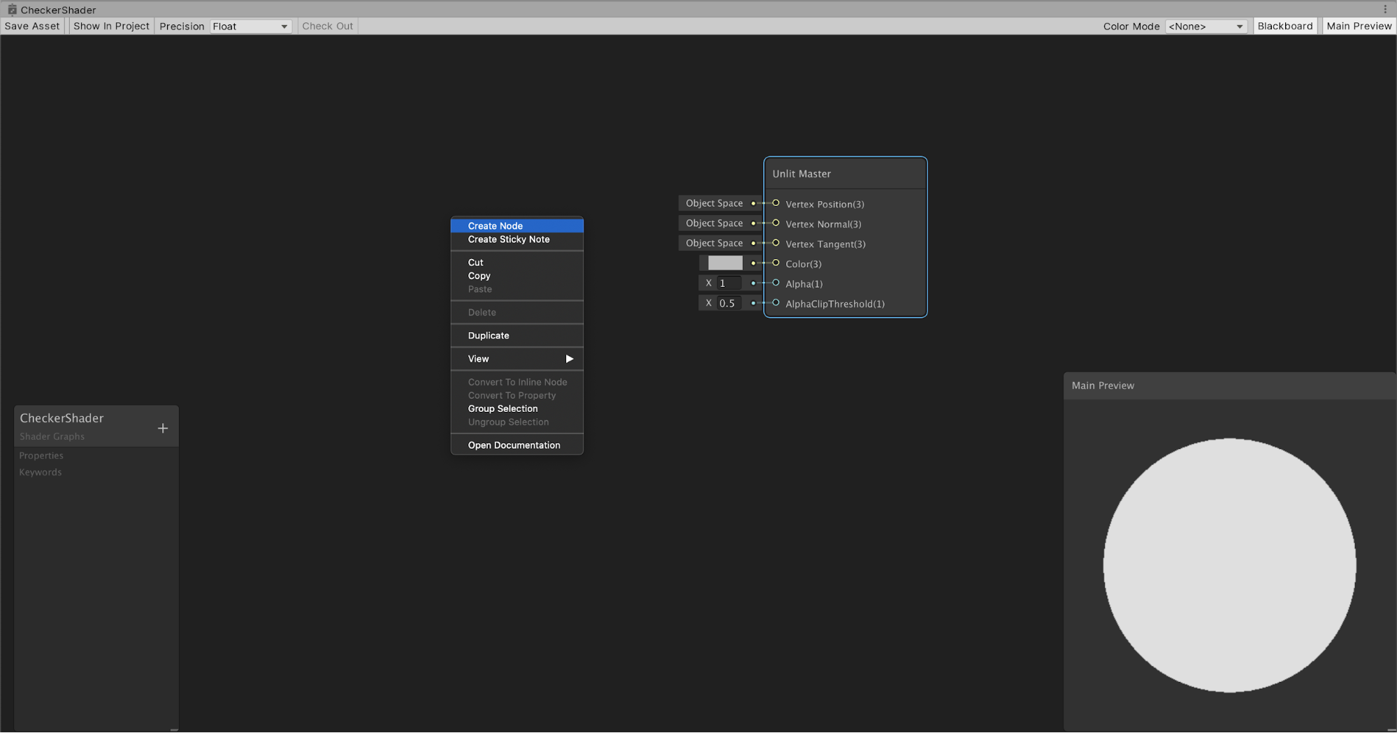 4. Double-click on CheckerShader to open the Shader Graph window.