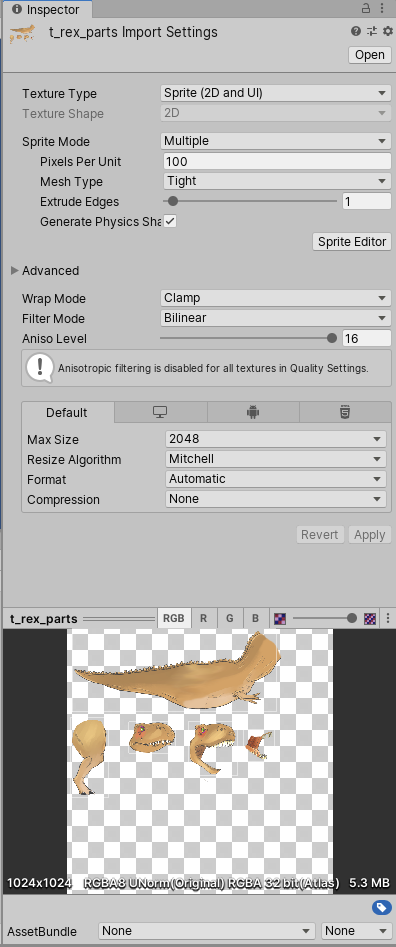 - Filter Mode: This determines the Sprite’s filtering mode.