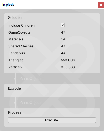 - Explode - Explodes each GameObject in multiple GameObjects depending on its submesh count.