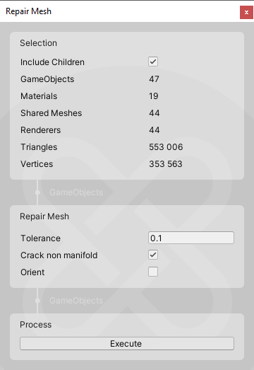 - Repair Mesh- This will repair an asset automatically by running several algorithms. This includes vertex welding, face orientation, and edge collapse.