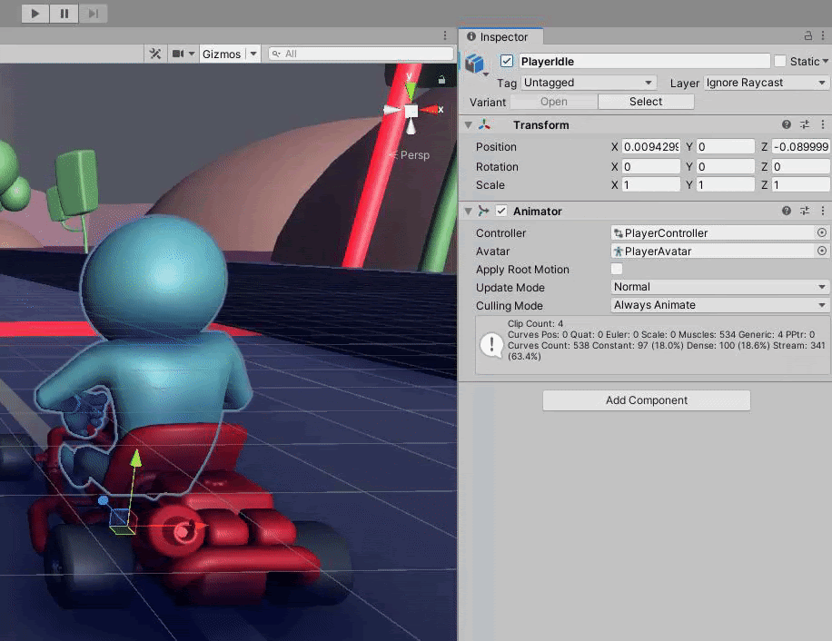 11. 플레이 버튼을 클릭했을 때 캐릭터가 카트를 따라 움직이지만 여전히 대기 상태 애니메이션을 유지하는 경우도 있습니다.