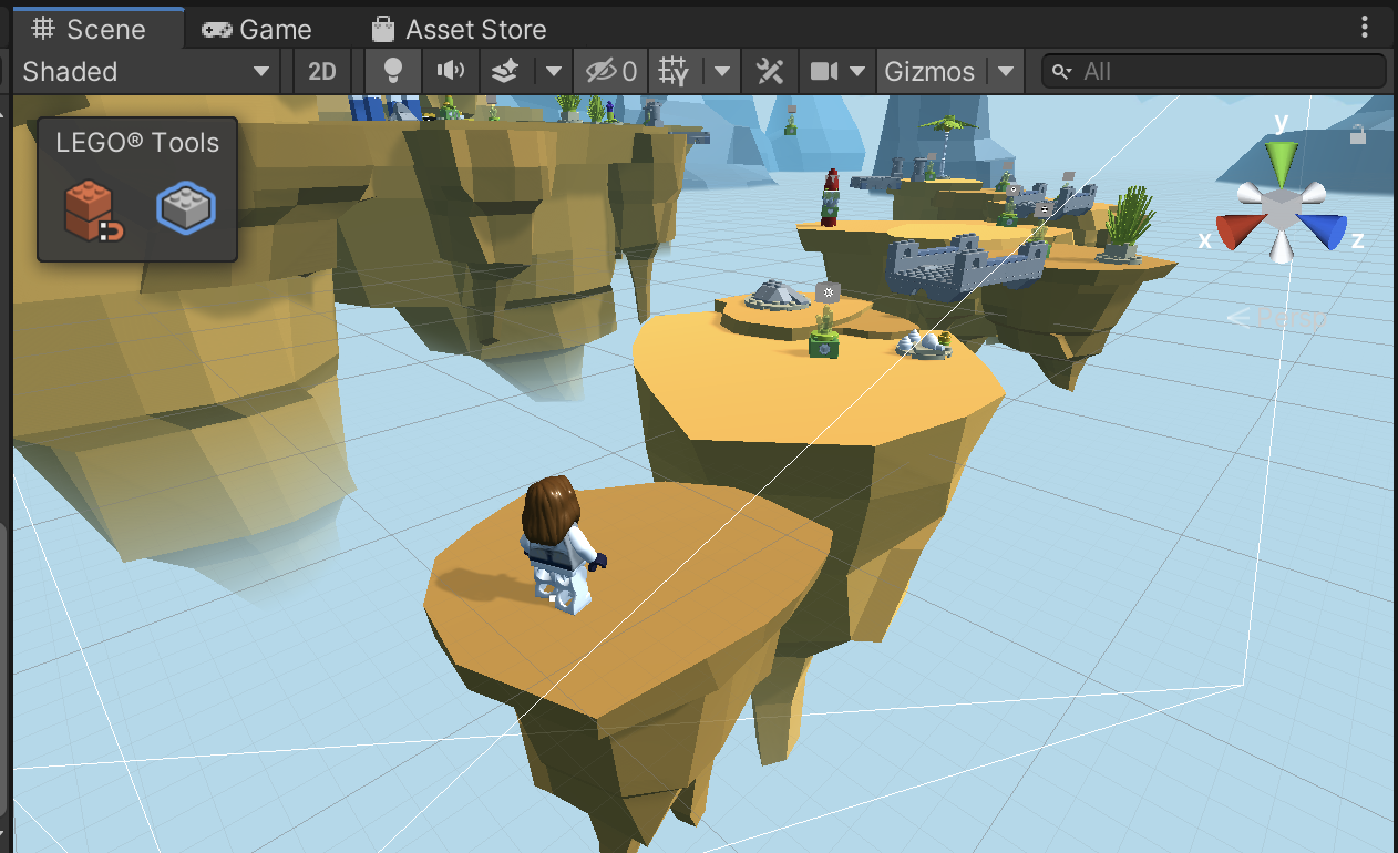 1. Project ウィンドウで、「Level 2」をダブルクリックしてシーンを開き、プロンプトが表示されたら変更を保存します。今のところ、Scene ビューに表示されているものは、LEGO Tutorial シーンとまったく同じです。