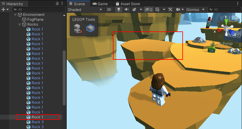 LEGO® Microgame 教程场景中已经有了很多内容。我们首先创建新岩石,您可以在岩石上放置这个可锁定的区域: