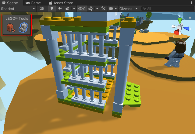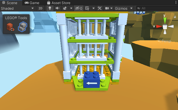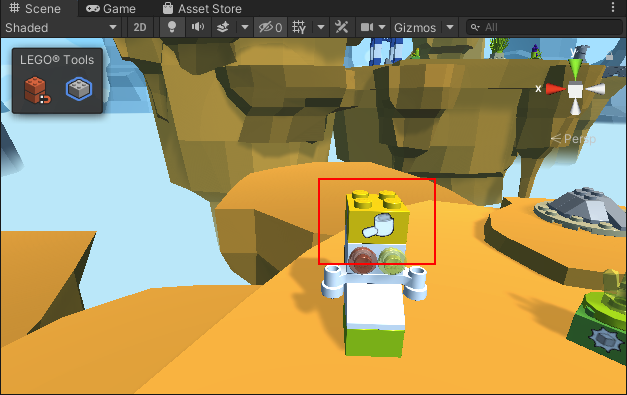 2.选择“Console”并将其拖入 Scene 视图中。在 LEGO ® Tools 中,禁用 Brick Building(第一个按钮)。然后,使用移动工具 (W) 将该对象放置在游戏开始位置附近,并使用旋转工具 (E) 调整该对象面向的方向。(一旦该对象可以使用后,可以根据需要将该对象移动到游戏中的其他位置!)