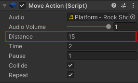 2. 在 Inspector 中,找到 Move Action (Script) 组件中的 Distance 属性。