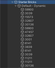 3. 选择“Starter Bricks”游戏对象名称左侧的灰色箭头以将其展开。
