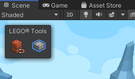 让我们回顾一下如何在此 Microgame 中使用积木进行构建。Scene 视图左上方的 LEGO® Tools 可控制两项设置:Brick Building 和 Brick Selection。