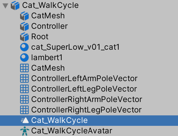 Next, it’s a good idea to create a Prefab from the Cat_Rig so we can reuse it easily in the future.