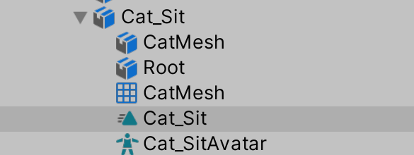 Now that our Cat_Rig is configured and in the Scene as a Prefab, we can configure the Animation Clips that we want to use for the cat. As with models, animations are imported into Unity as separate model packages.