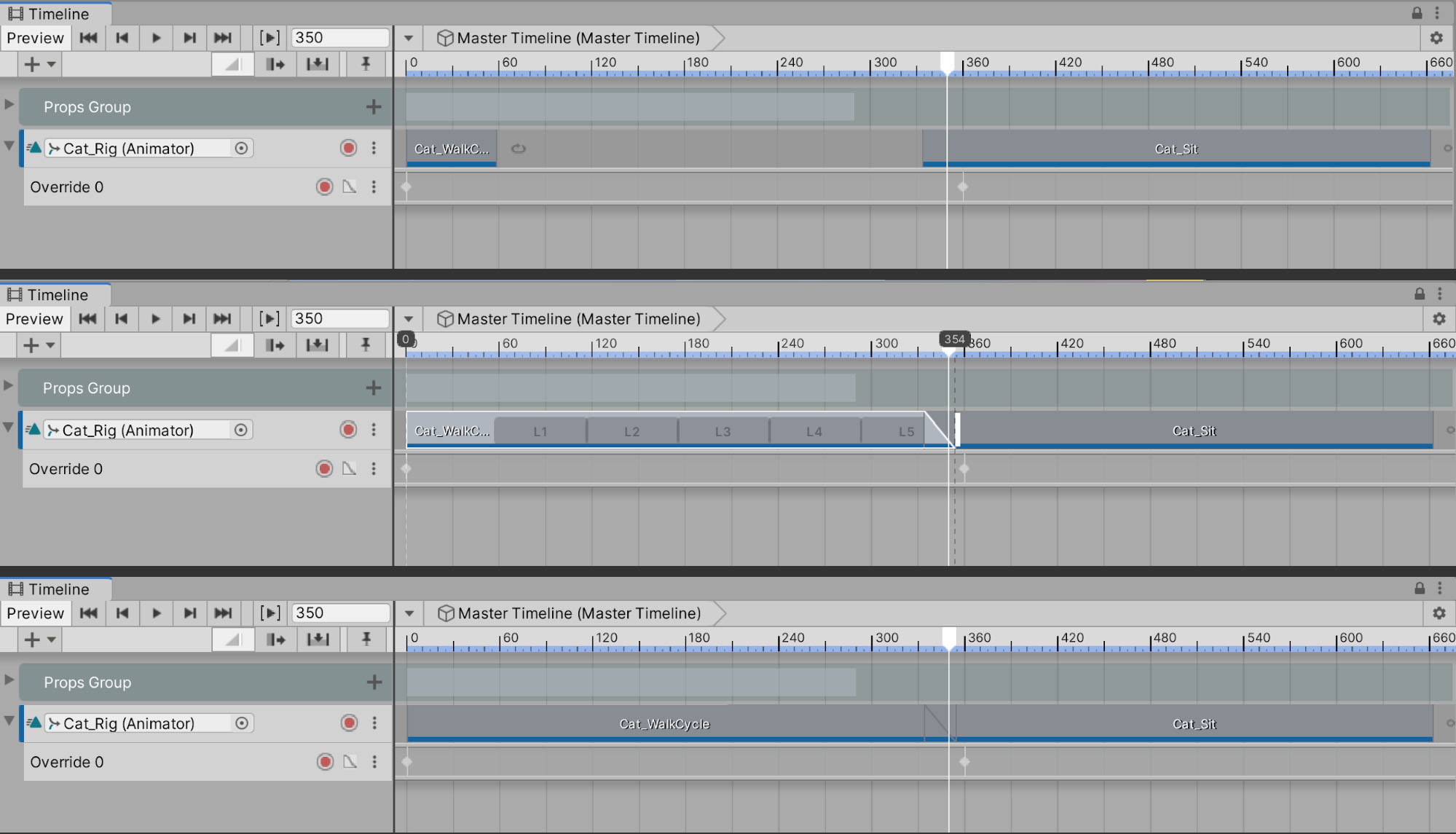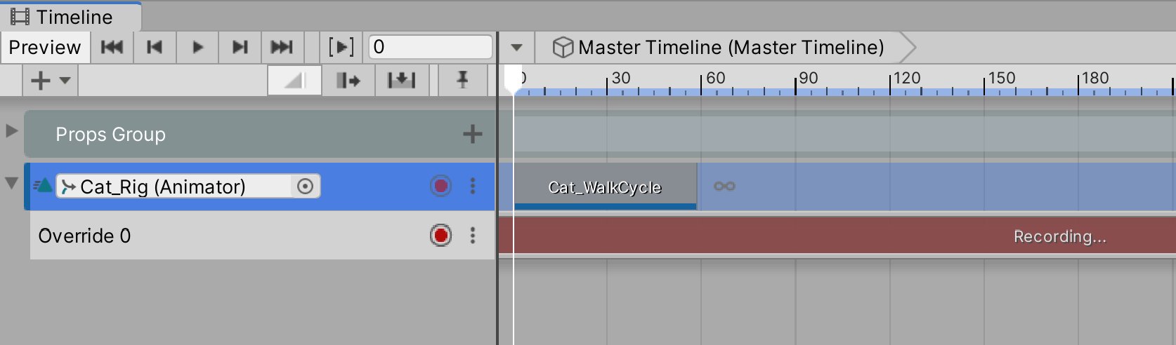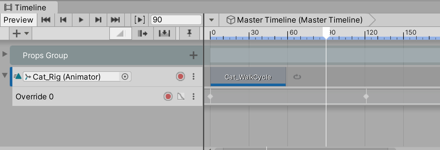 Now that our Cat_Rig and its Animation Clips are ready to use, we can sequence them together in the Timeline.