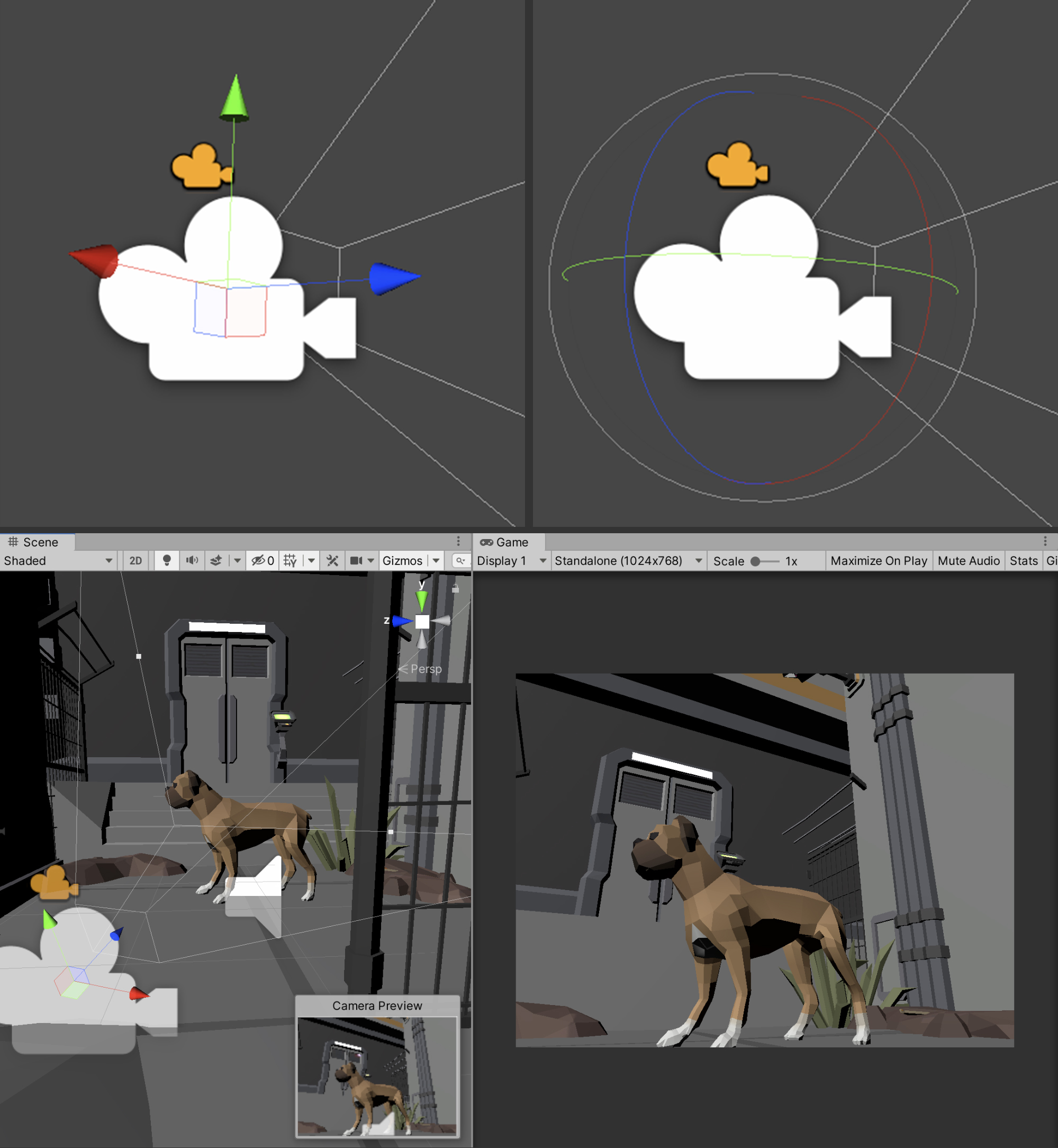 A quicker and perhaps more intuitive way to frame objects is indirectly manipulating the position of the camera based on what we see in the Scene view. Let us demonstrate with the cat.