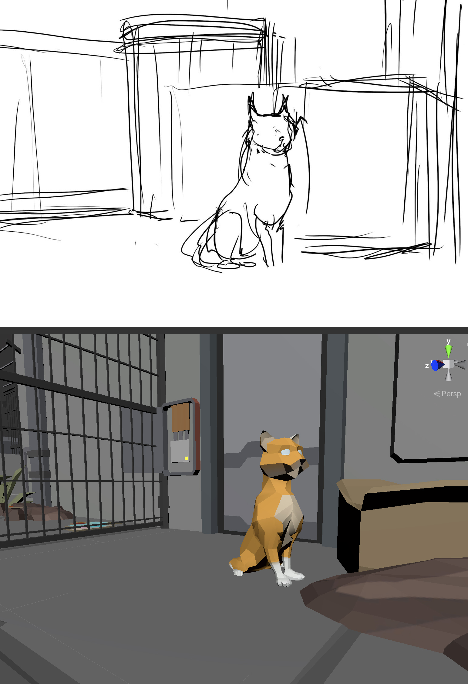 For practice, let's try recreating the frame in the center of the storyboard panels depicting the cat sitting proudly in the center of the frame.