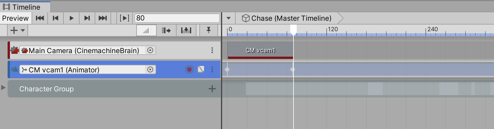3. Set the Timeline's playhead to Frame 80. Next, drag and shorten the Virtual Camera clip in the Main Camera (CinemachineBrain) Track to Frame 80. This will set our boom camera shot to last 80 frames (Figure 13).