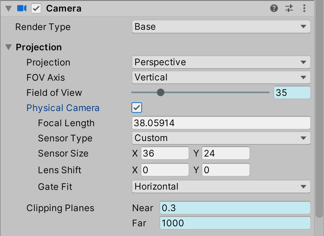 Before we proceed, let's modify a setting in our Main Camera that will make setting up our Virtual Cameras easier for those familiar with physical lenses or cameras in a DCC, such as Maya.