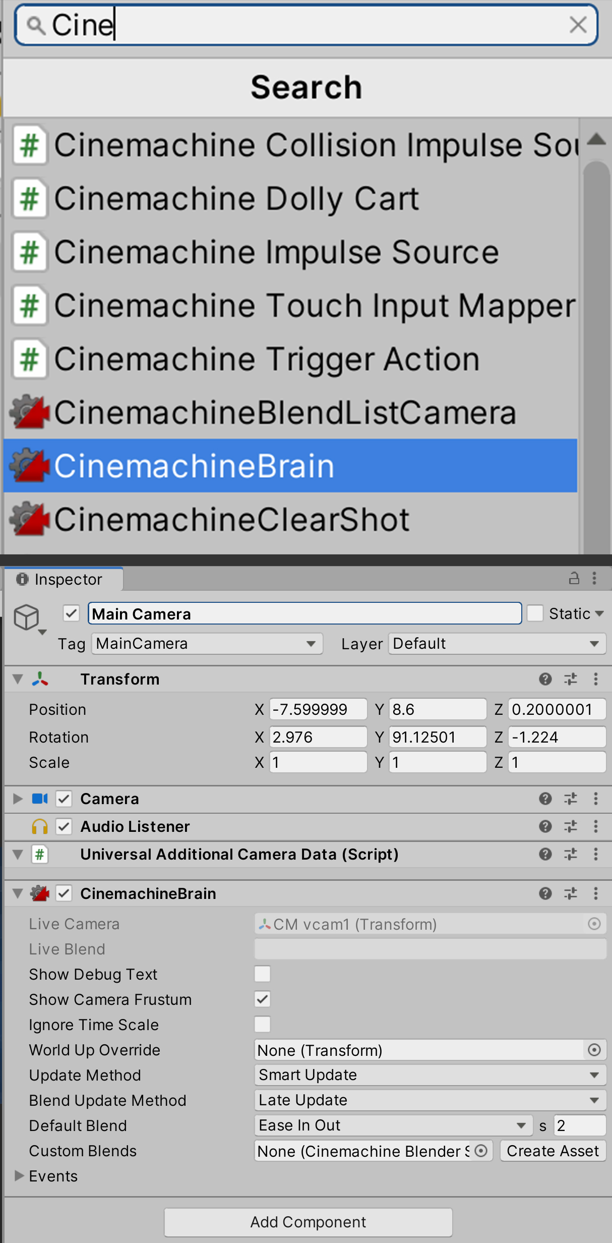 The Cinemachine Brain component should now be part of your Main Camera (Figure 02).