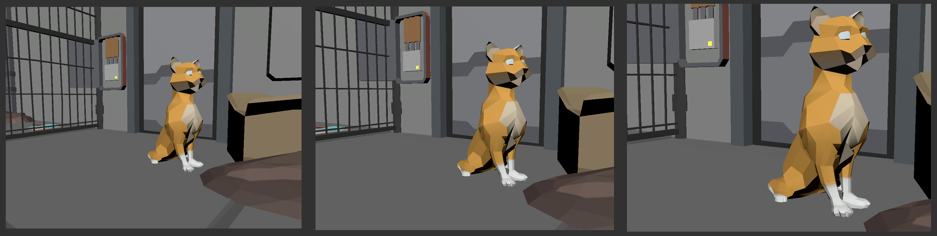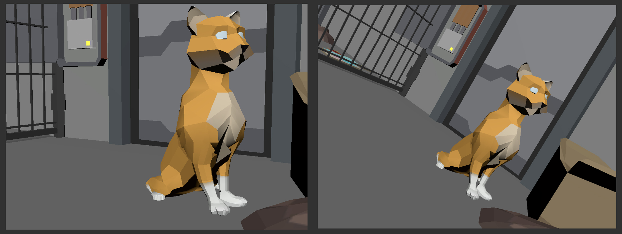 3. From this framing, orbit the Scene view to see if the cat is visible in the lower-left corner. We want to ensure that when we boom the camera down, the cat will be in the frame.