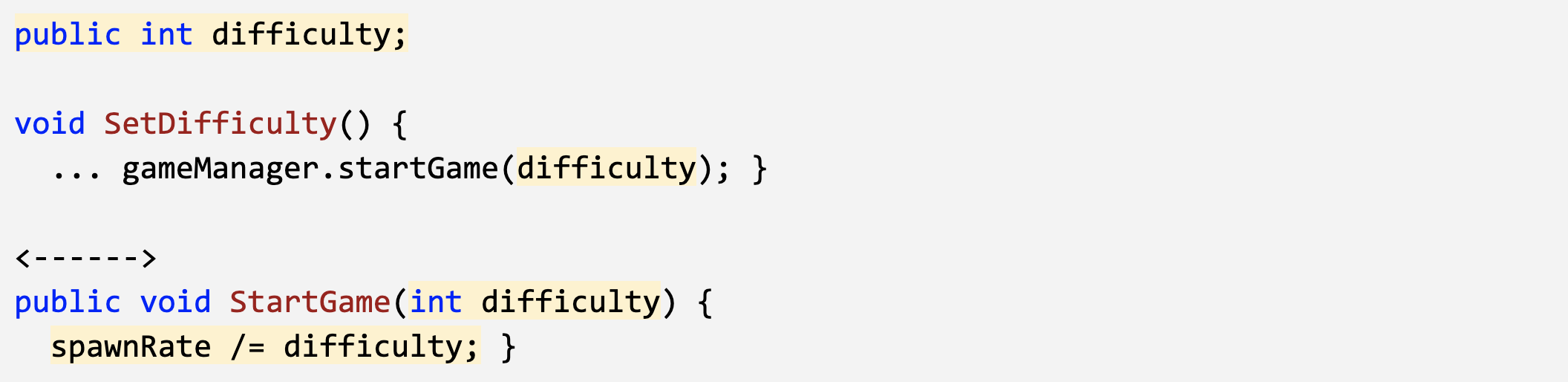 2. Add an int difficulty parameter to the StartGame() function