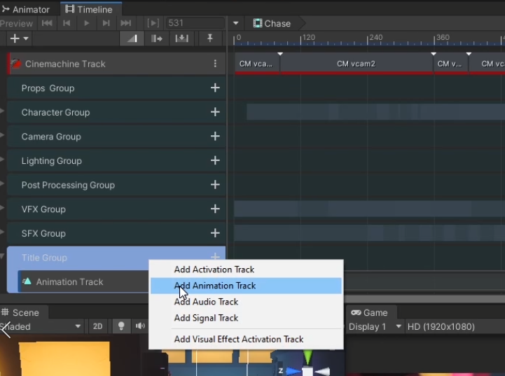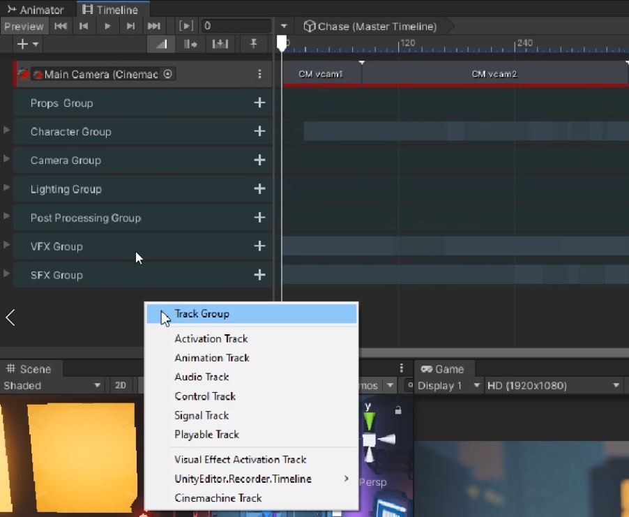 1. In the Timeline window, right click to create a new Track Group (Figure 24).