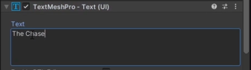 7. In the Inspector, go to TextMeshPro - Text (UI) and change “New Text” to “The Chase.” (Figure 14)