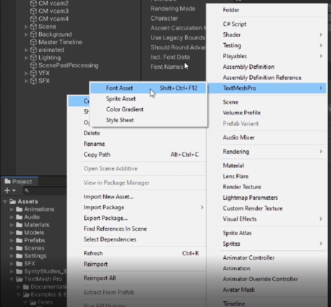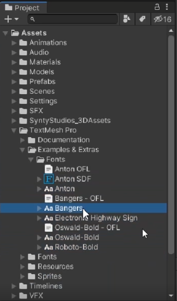 Now that you have the necessary tools in your project, it’s time to create your title. You will be using a font called Bangers. You will begin by creating the Font Asset.