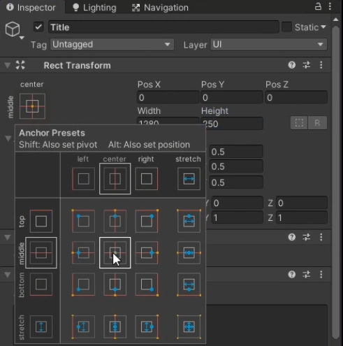 9. In the Anchor Presets, click the center, middle box to keep our title positioned and centered in view(Figure 16).
