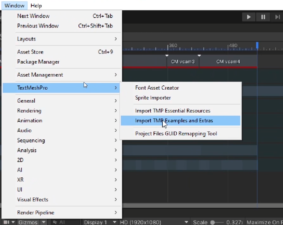 Window > TextMeshPro > Import TMP Examples and Extras (Figure 03).