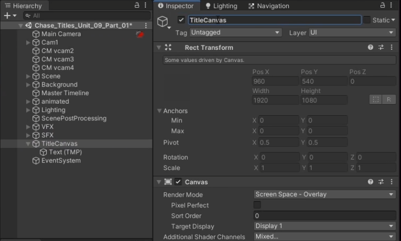 4. This step will also create a Canvas, which will be the parent of your Text (TMP) GameObject. Rename this “TitleCanvas.” (Figure 10)