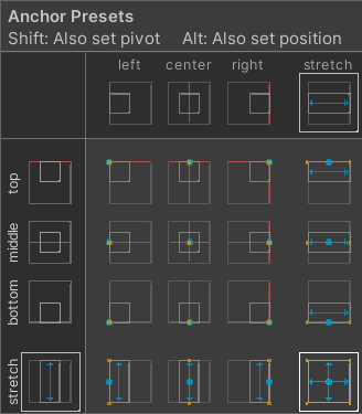 2. In the Inspector, change the Anchor Presets under Rect Transform to Stretch, Stretch while holding down the Alt/Option and Shift keys in order to stretch the image to fit over the entire view (Figure 41). You should immediately see a white image cover the entirety of your Game View.