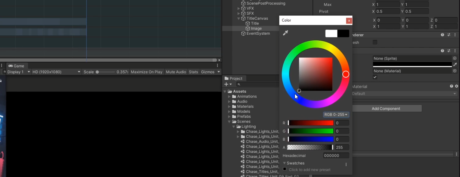 3. Below, under Image, change the color from white to black (Figure 42). Doing this should change the color of the Game view from white to black.