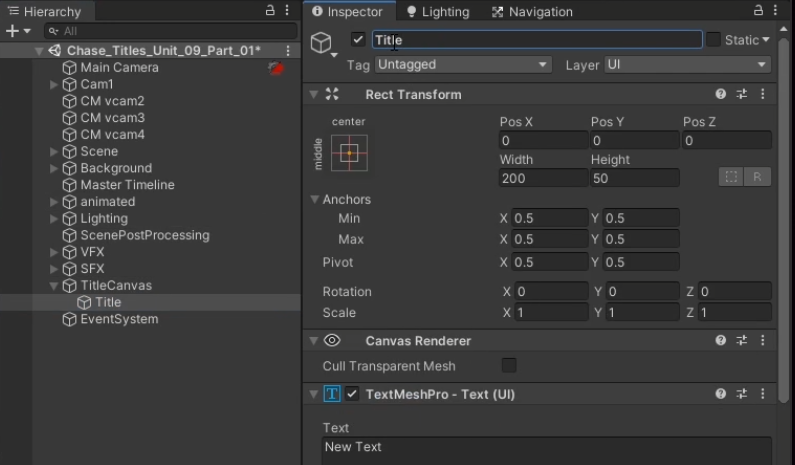 6. Back in the Hierarchy window, rename Text (TMP) to “Title.” (Figure 13)