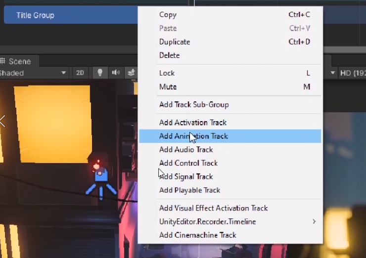 5. In the Timeline, right click the Title Group and select Add Animation Track (Figure 44).