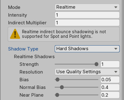 • Shadow Type: This setting determines whether the light casts No Shadows, Hard Shadows, or Soft Shadows.