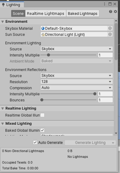 1. Go to the Window dropdown and select Rendering > Lighting Settings. This will open the Lighting window (Figure 16).