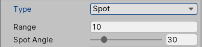 - Range: Determines how far the light emitted from the center of the object travels. This is for Point and Spot lights only.