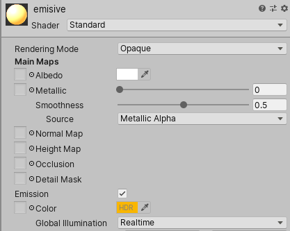 Emissive Materials emit light across a surface area. These types of lights contribute to bounced light in your Scene and can have their color and intensity properties modified during run time. The light emitted from emissive Materials has no range property, but the light will have a fall-off.